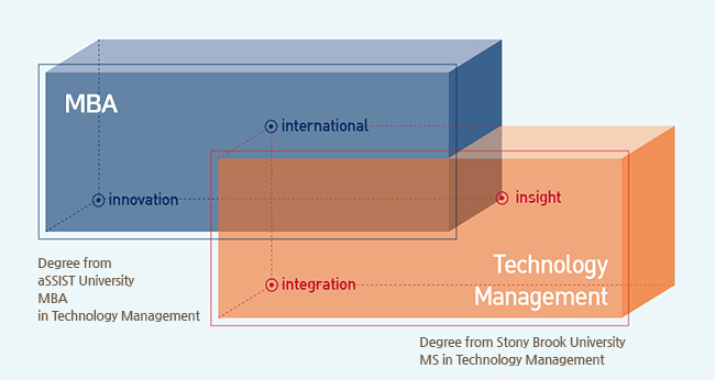 It is possible to pursue and obtain two degrees: Master of Science in Technology Management (MS in TM) degree from the State University of New York at Stony Brook and a Master of Business Administration (MBA) degree from aSSIST University.
